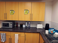 | ポットや電子レンジもある台所 |